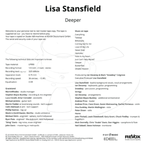 Product information: 1/4″ – 2-Track – CCIR – 15IPS – 320 nWb/m – LPR90 – 10.5″ Revox Metal Reel. Revox deluxe packaging with climate archive box and slipcase. A comprehensive information folder is included. Created personally for each customer and therefore non-returnable.
